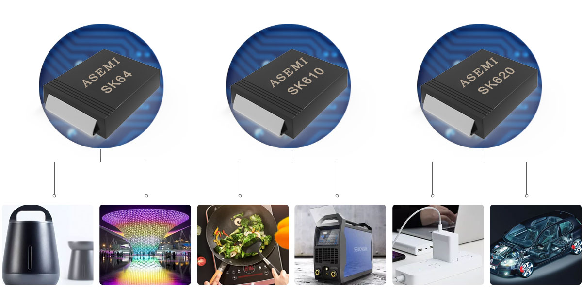 The diodes is widely used in: power supplies, chargers, adapters, LED lighting, home appliances, civil and industrial equipment and other products